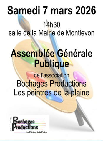 Assemblée générale de l’association bochages productions - les peintres de la plaine. Par cette belle journée, samedi après-midi, s’est tenue l’assemblée générale de l’association Bochages Productions - Les peintres de la plaine, dans la salle communale de Montlevon, où l’atelier libre de peinture est ouvert tous les lundis après midi de 14 à 19h. Après le message de bienvenue aux personnes présentes, Jacqueline GOUBY; Présidente, donne la parole à Philippe SERON; secrétaire, pour la lecture du bilan de l’année. Les deux ateliers de Montlevon et Château-Thierry rencontrent toujours un vif succès dans une ambiance conviviale mais aussi studieuse, où l’on peut pretiquer différentes techniques, comme la gouache, l’acrylique, le pastel, le crayon de couleur ou l’huile, sous l’oeil exercé de Jacqueline GOUBY qui n’hésitepas à donner son avis et conseils. Pour agrémenter les séances hebdomadères, une ou deux fois par mois, l’animatrice propose des exercices à réaliser dans l’après-midi. De cette façon, c’est l’essentiel du sujet qui prime, ouvrant la voie à une spontanéité quelque fois perdue. Ces exercices ont beaucoup de succès et sont largement demandés. Pour ce qui est des expositions, c’est dans le contexte de la porte ouverte des Ateliers d’Art, de la journée poètique ou du forum des associations de Château-Thierry que l’on peut voir quelques oeuvres réalisées dans les ateliers. Quant à la deuxième activité de l’association : le site internet sudaisne.com , il continue à informer sur les évènements du sud de l’Aisne, par des reportages photos et vidéos, tout en proposant des pages Association, Mairie, Particuliers et Commerces. Le bilan financier marque un certain déficit, que la bonne gestion ne met pas en périle l’association. 2026 se présente donc sous de bons hospices dans la continuité d’un état d’esprit qui allie partage et convivialité. Compte-rendu de l’A.G. (pdf)