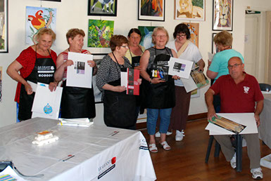 Pour la clôture, dimanche soir, en remerciement, une surprise attendait les peintres présents; puisque Jacqueline Gouby, à remis à chacun un lot de matériel de peinture offert par le sponsor contacté pour la manifestation : "Le géant des beaux arts".