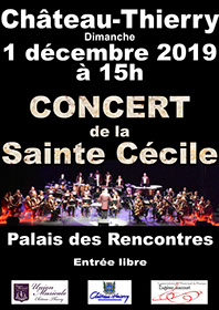L’Orchestre d’Harmonie de Château-Thierry revient sur la grande scène du Palais des Rencontres le Dimanche 1er Décembre 2019 pour fêter Sainte Cécile, patronne de la musique, des musiciens, des compositeurs, des luthiers, des chanteurs. Se présenteront sur la scène plus de 60 musiciennes et musiciens, issus de l’Union Musicale et du Conservatoire Municipal.