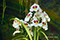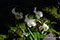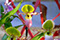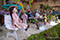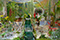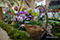 Scènes de jardin, tables et chaises, occupées par une magnifique collection de poupées, petit bruit d'eau qui coule d'une cascade et jet d'eau, petit pont, il n'en faut pas plus pour planter un décor où les orchidées sont ainsi mises en valeur.